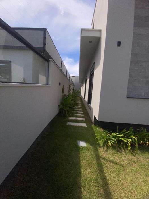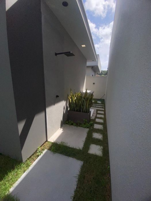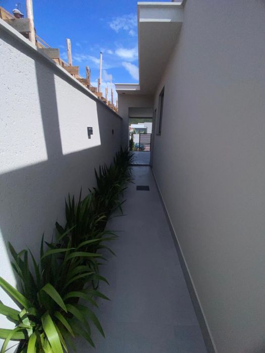 Passagem lateral com paisagismo